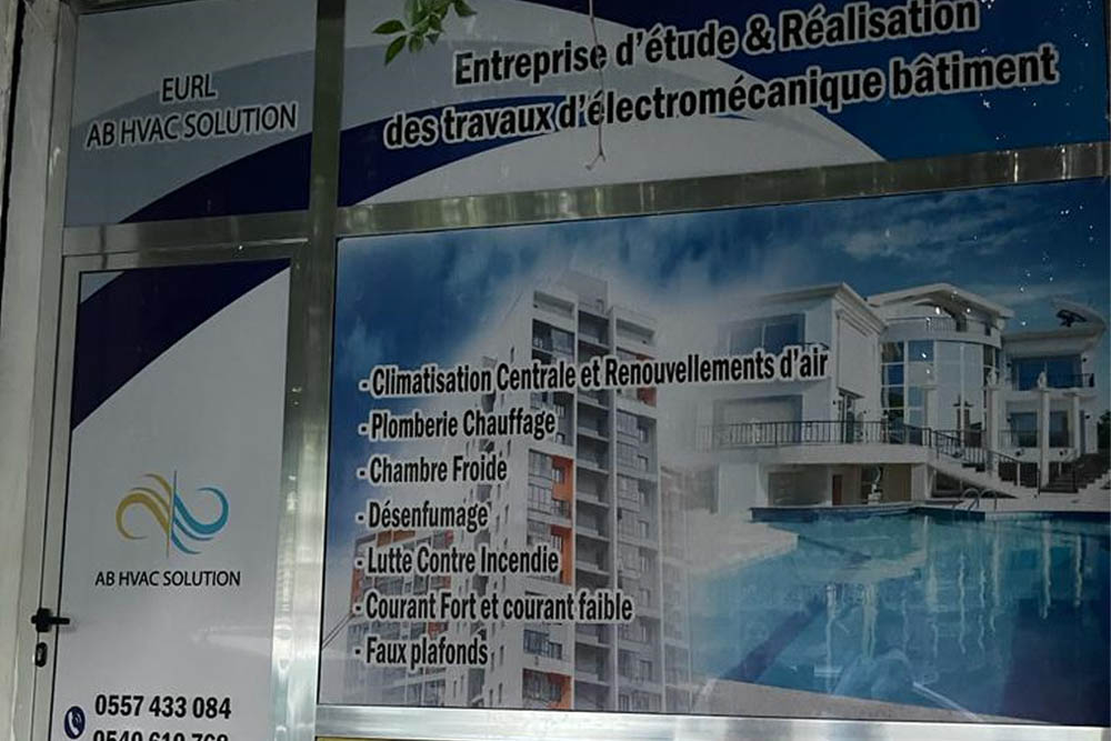 une entreprise Algérienne de prestation de services, spécialisée dans l’étude, l’installation et la maintenance des systèmes HVAC, froid, sécurité contre les incendies, ventilation, plomberie chauffage, désenfumage et le courant fort et faible